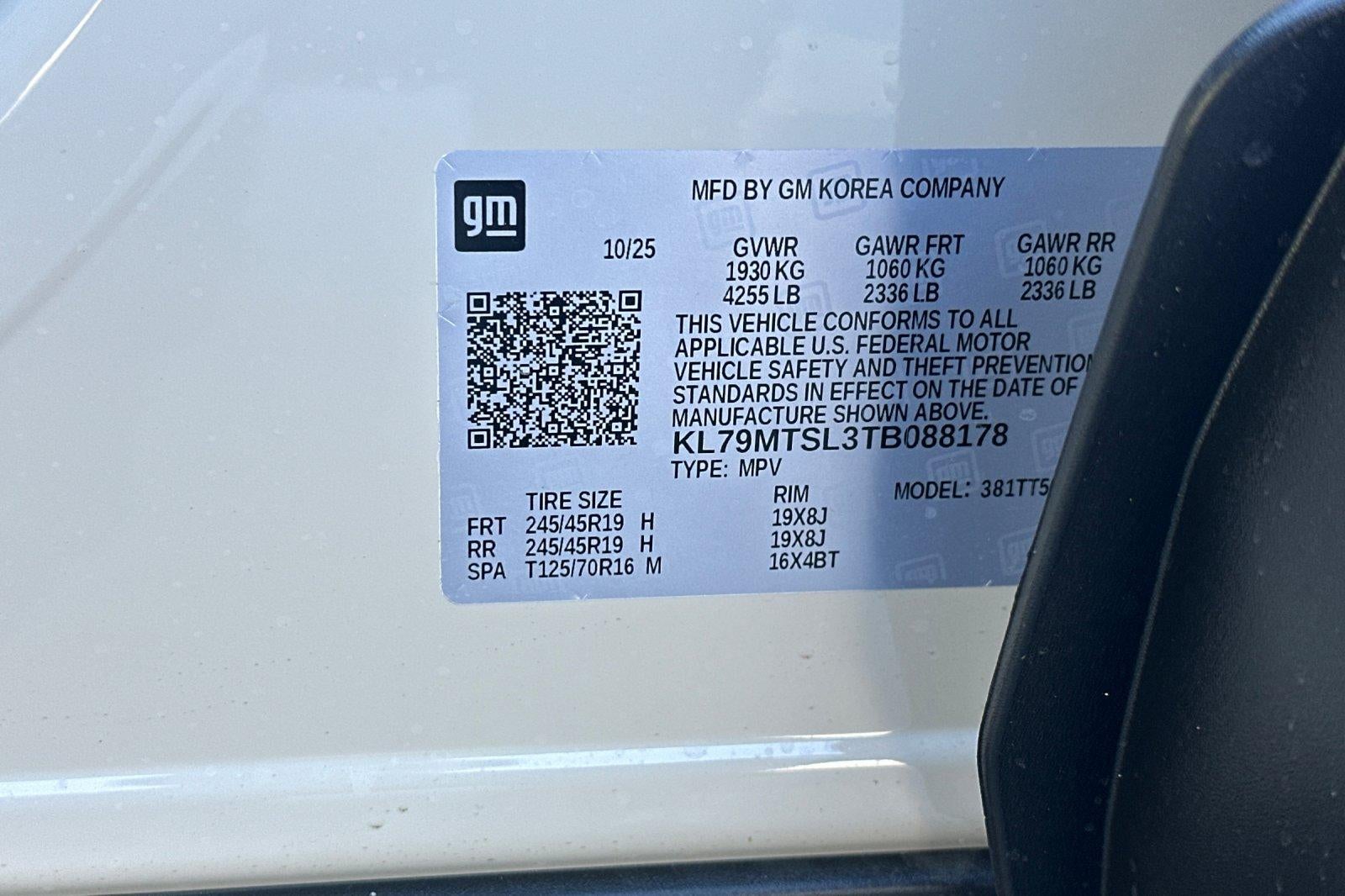 - Tires, 245/45R19 all-season, blackwall